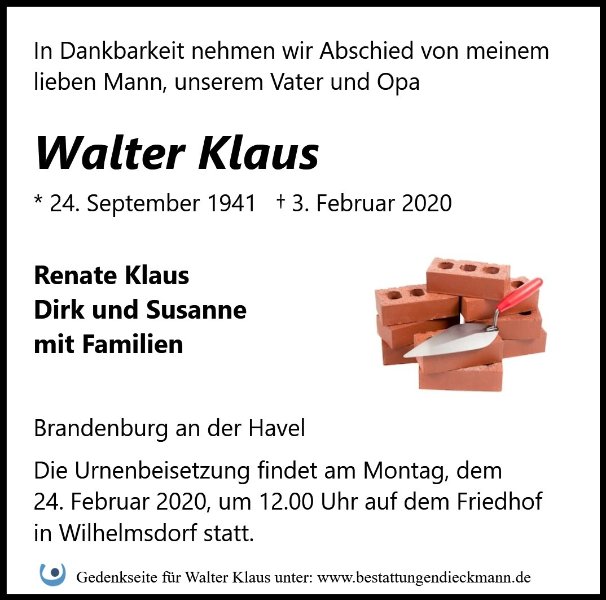 gestorben am 3. Februar 2020 in Brandenburg an der Havel