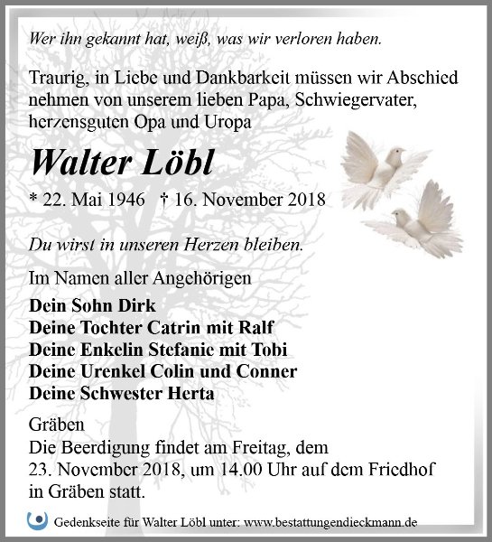 Walter Löblgestorben am 16. November 2018