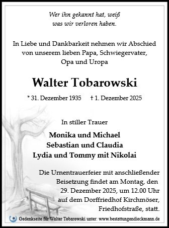 gestorben am 1. Dezember 2025 in Brandenburg an der Havel OT Kirchmöser