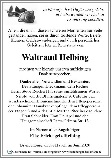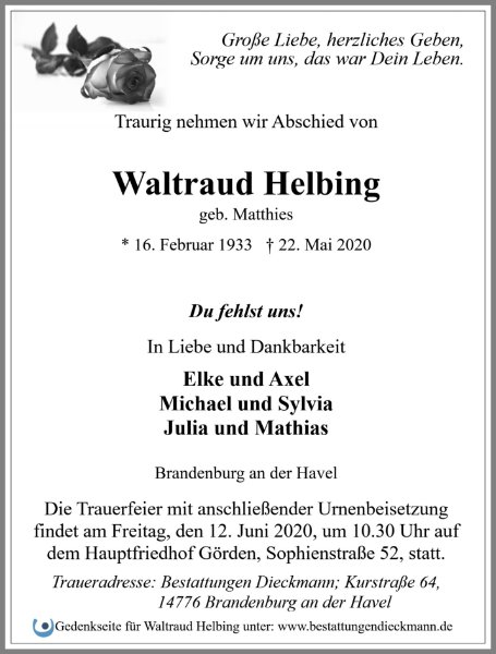 Waltraud Helbinggestorben am 22. Mai 2020
