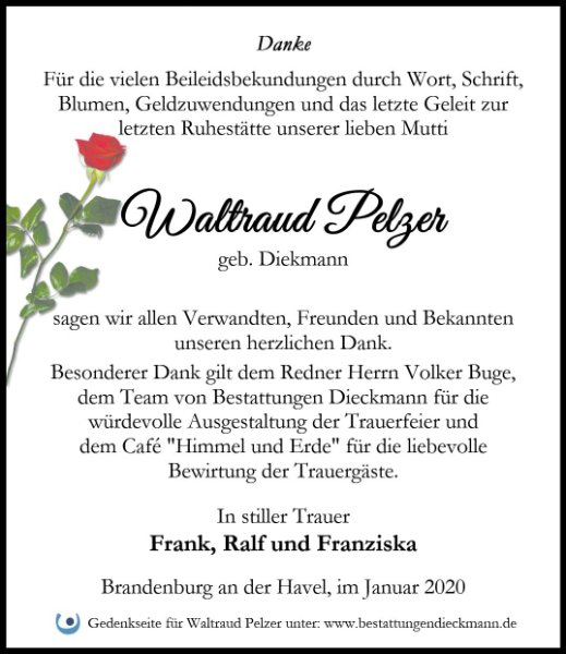 Waltraud Pelzergestorben am 13. Dezember 2019