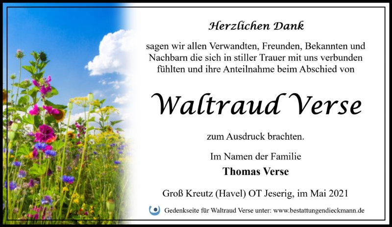 in diesen Tagen fühlen wir mit Ihnen und wünschen Ihnen von Herzen, dass Sie aus den glücklichen Erinnerungen Kraft schöpfen, um positiv in die Zukunft zu gehen. Diese Gedenkseite möge Ihnen dabei helfen, Ihre Trauer zu teilen und das Andenken gemeinsam wachzuhalten.