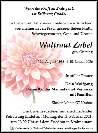 in dieser Zeit des Schmerzes wünschen wir Ihnen Kraft, den Verlust im Kreise Ihrer Liebsten zu verarbeiten. Als Zeichen unserer Anteilnahme und des Gedenkens entzünden wir dieses erste Licht. Möge diese Gedenkseite Ihnen helfen, Erinnerungen zu teilen und so das Andenken gemeinsam wachzuhalten.