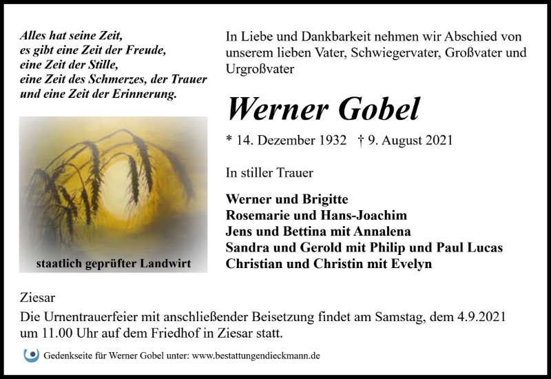 Werner Gobelgestorben am 9. August 2021