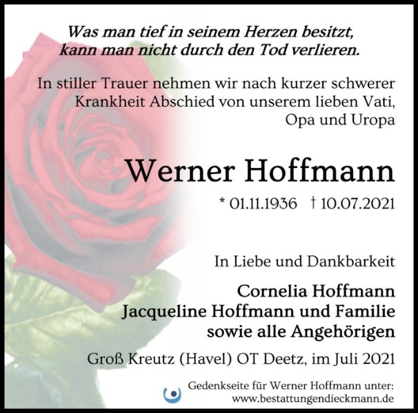gestorben am 10. Juli 2021 in Treuenbrietzen