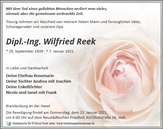 sehr traurig vernahm ich die Nachricht, dass Wilfried nicht mehr unter uns weilt. Ich möchte Ihnen und Ihrer Familie meine herzliche Anteilnahme bekunden.