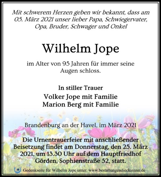 Wilhelm Jopegestorben am 5. März 2021