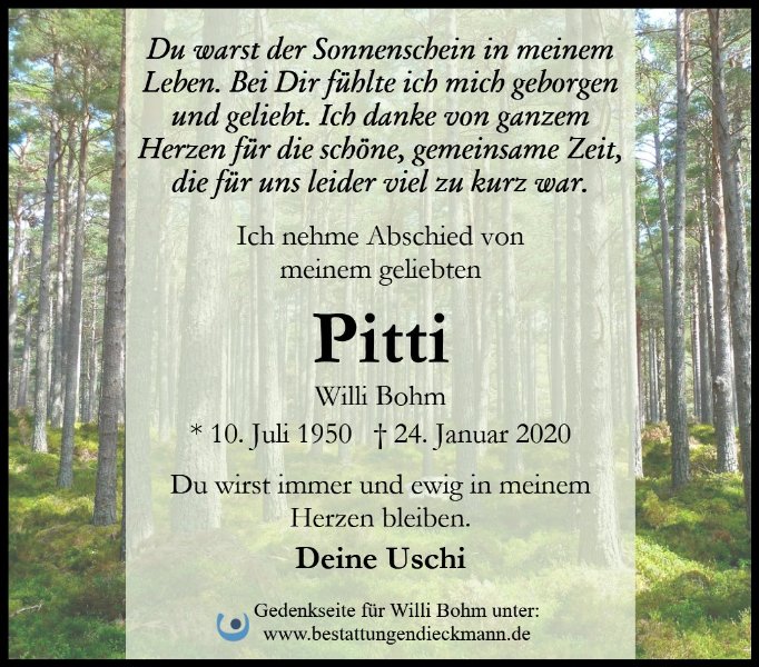 Viele Menschen sehnen sich danach, endlich gehen zu dürfen, aber für dich Pitti war es viel zu früh.