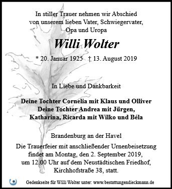 gestorben am 13. August 2019 in Brandenburg an der Havel