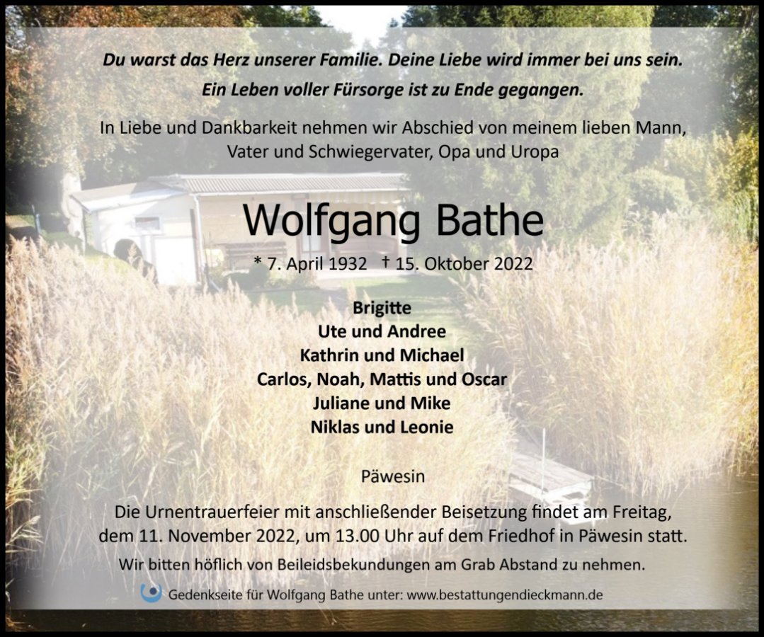 wir wünschen Ihnen von Herzen viel Kraft, dass Sie Menschen um sich haben, die Ihnen in dieser schweren Zeit beistehen und Halt geben. Zusätzlich können Sie auf dieser Gedenkseite Erinnerungen teilen und so das Andenken gemeinsam wachhalten.