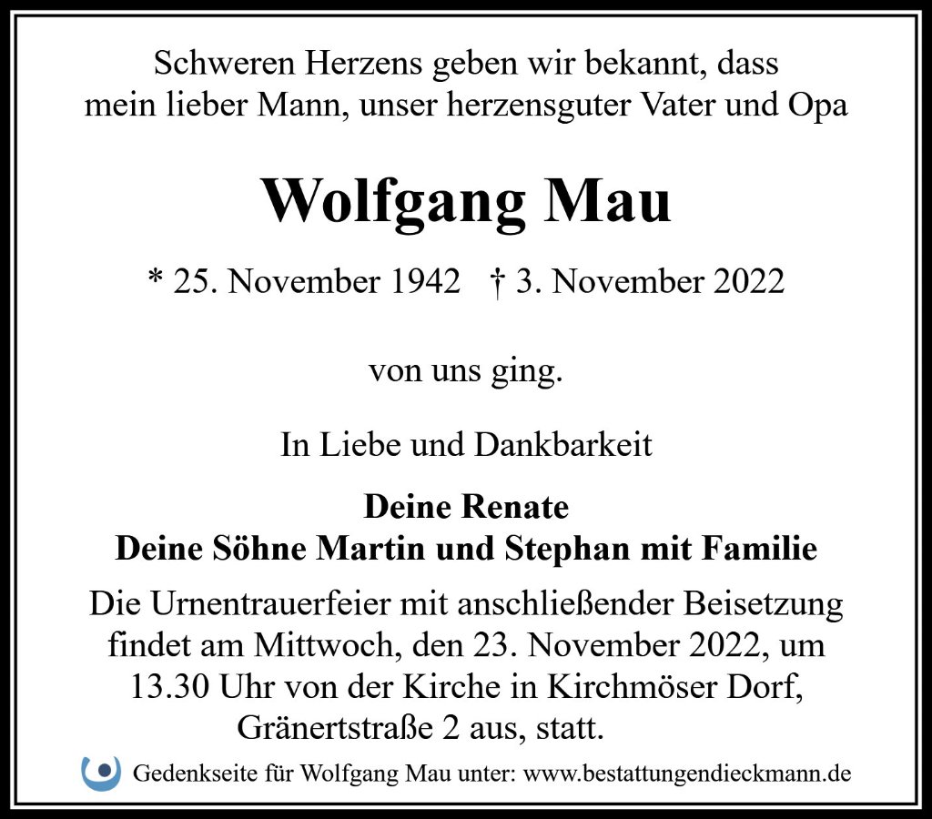 Wolfgang Maugestorben am 3. November 2022