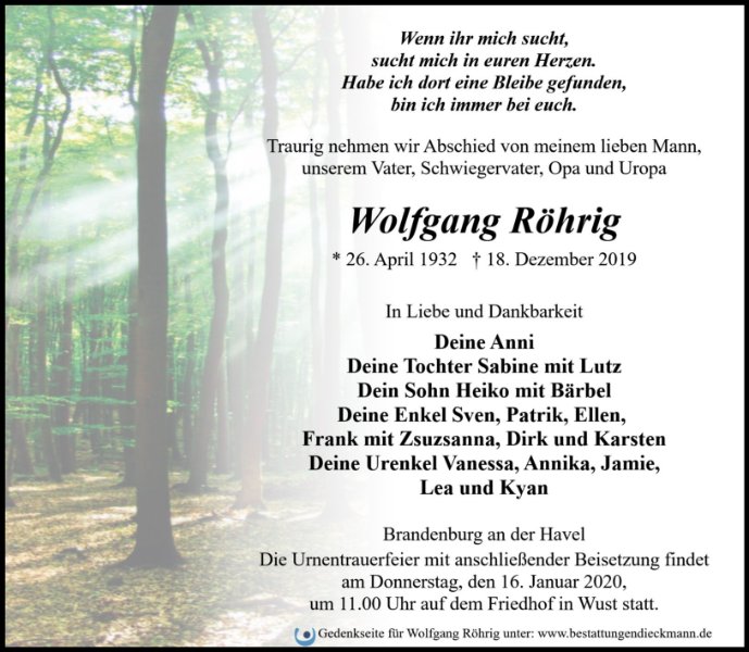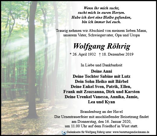 wir wünschen Ihnen für die kommende Zeit viel Kraft und dass es Ihnen gelingt, dankbar auf die positiven Erinnerungen zurückzublicken. Diese Gedenkseite möge Ihnen dabei helfen, Ihre Trauer zu teilen und das Andenken gemeinsam wachzuhalten.