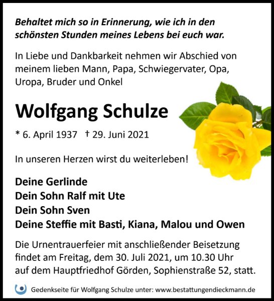 wir wünschen Ihnen von Herzen viel Kraft, dass Sie Menschen um sich haben, die Ihnen in dieser schweren Zeit beistehen und Halt geben. Zusätzlich können Sie auf dieser Gedenkseite Erinnerungen teilen und so das Andenken gemeinsam wachhalten.