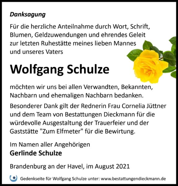 Wolfgang Schulzegestorben am 29. Juni 2021